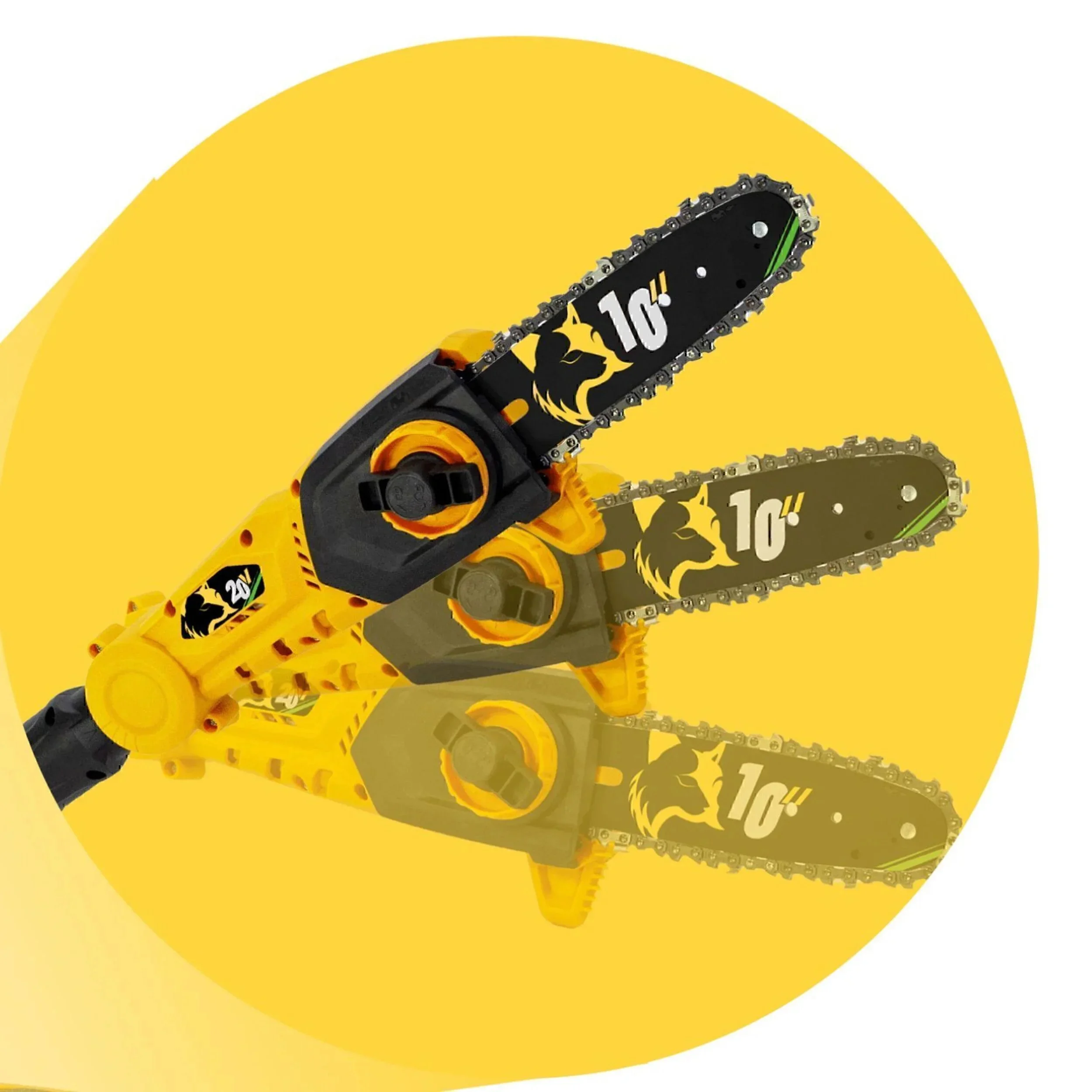 Motosierra de pértiga a batería (batería y cargador no incluídos) para poda de ramas en altura. La potencia de la gasolina con el bajo mantenimiento de los motores eléctricos.